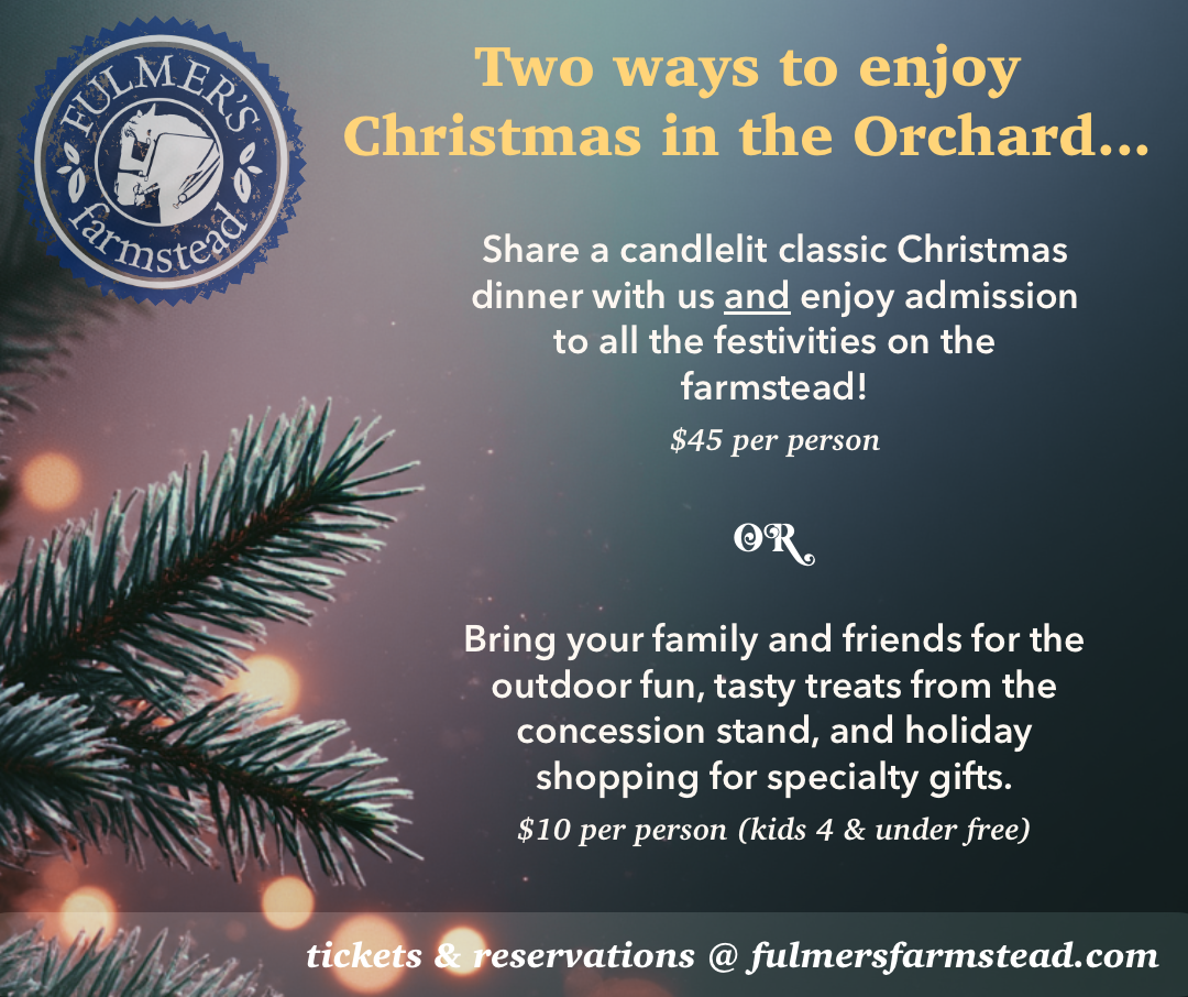 Join us for a classic Christmas dinner and enjoy admission to all the festivities on the farmstead.