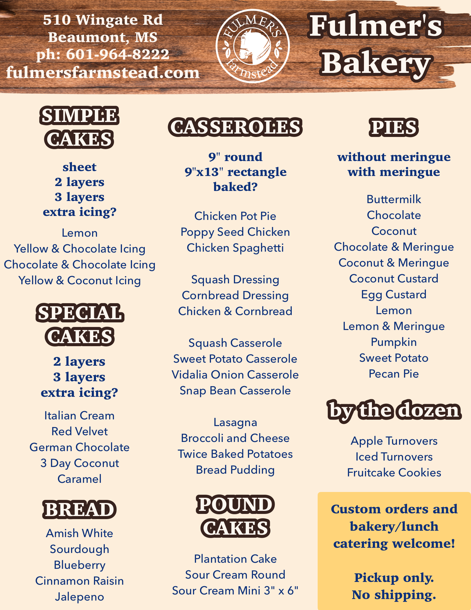 We are happy to take orders by phone! Please choose a pickup date at least 2 business days from order date especially during holiday and festival seasons.